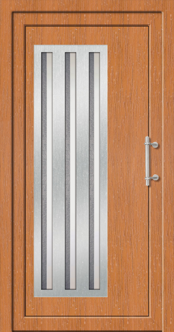 Elegantní výplně s přirozeným vzhledem dřeva, které dodají vstupním dveřím teplý, reprezentativní a nadčasový charakter.