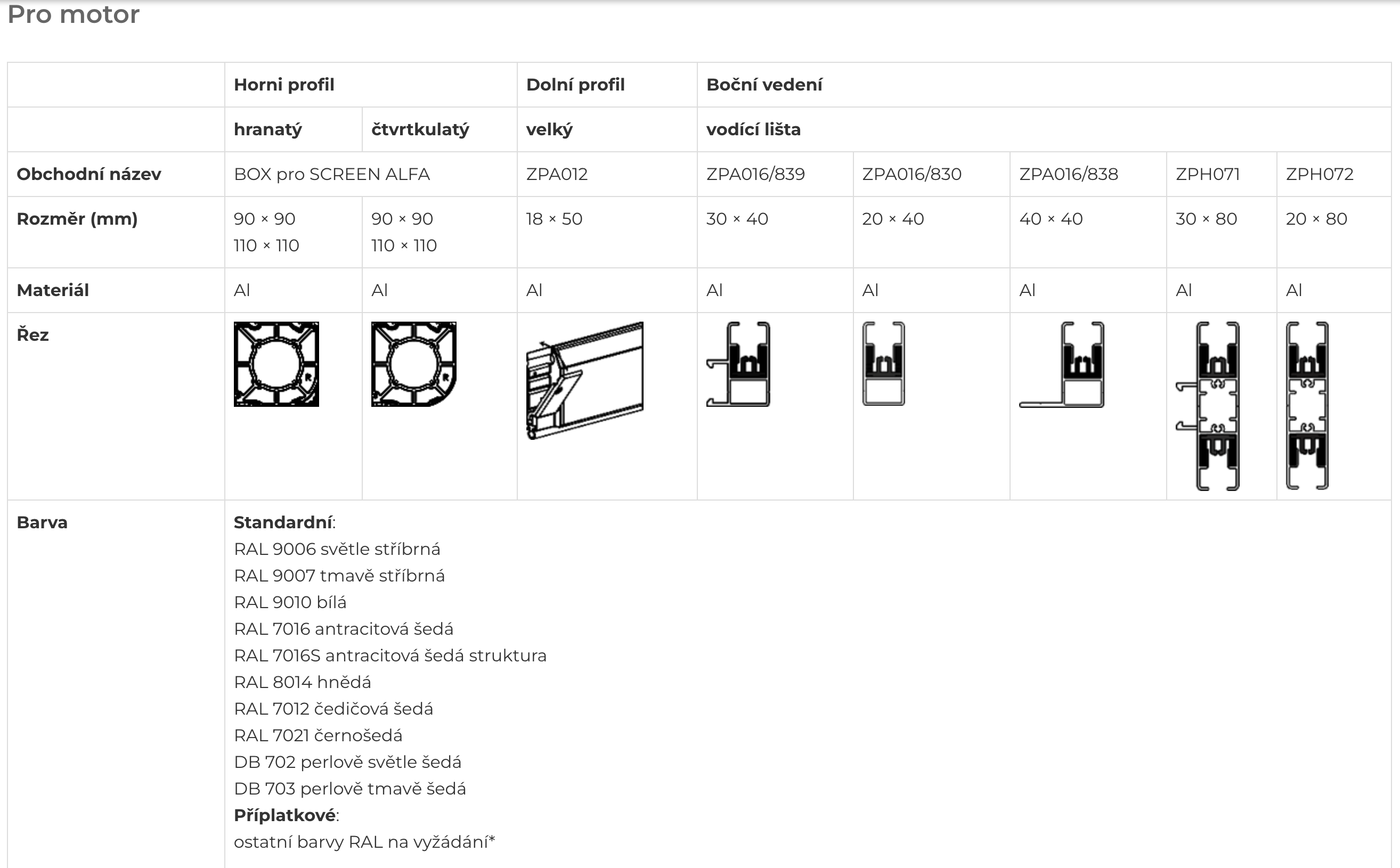 ** Pro samonosnou screenovou roletu Alfa-ZIP je max. šířka 3500 mm (klika, motor) nebo 2500 mm (solár),