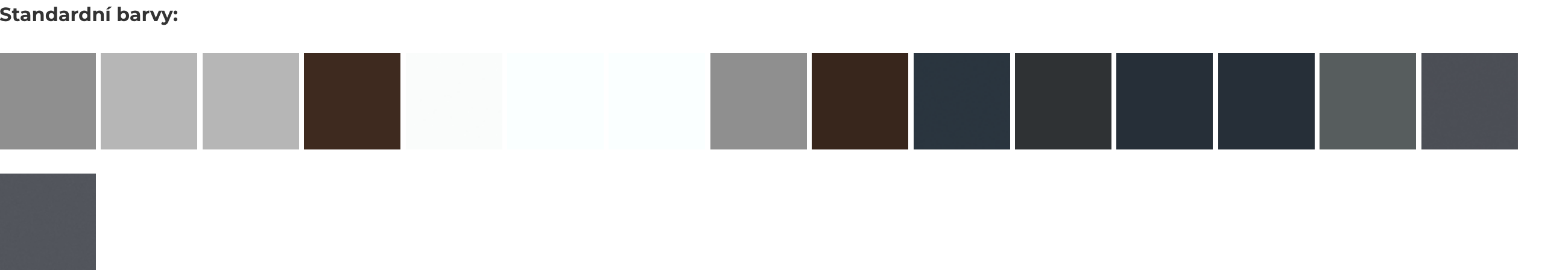 Standardní barvy konstrukce + možnost dalších odstínů RAL na vyžádání.