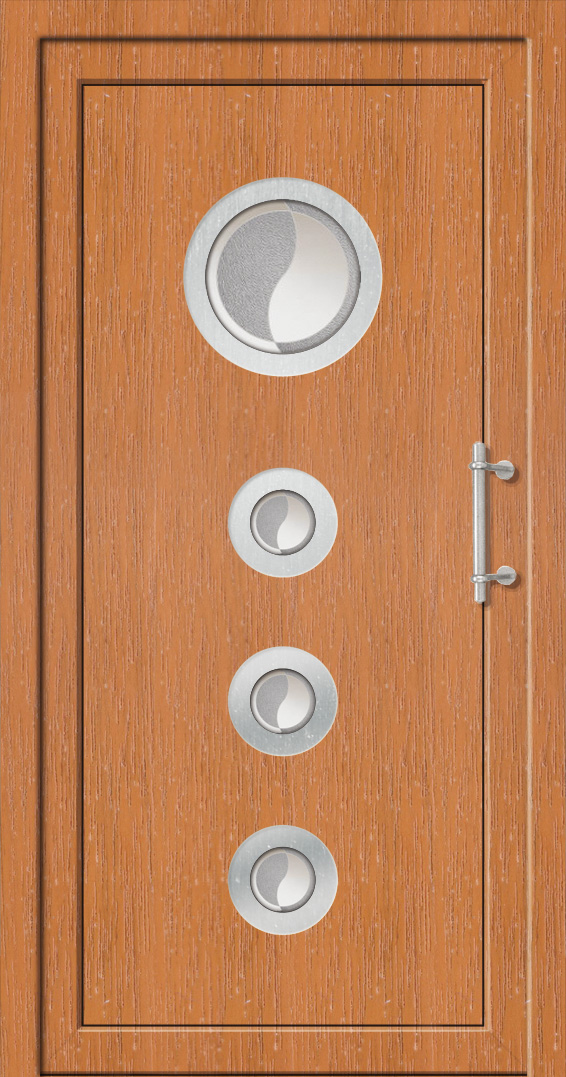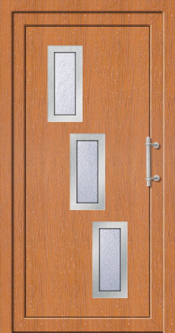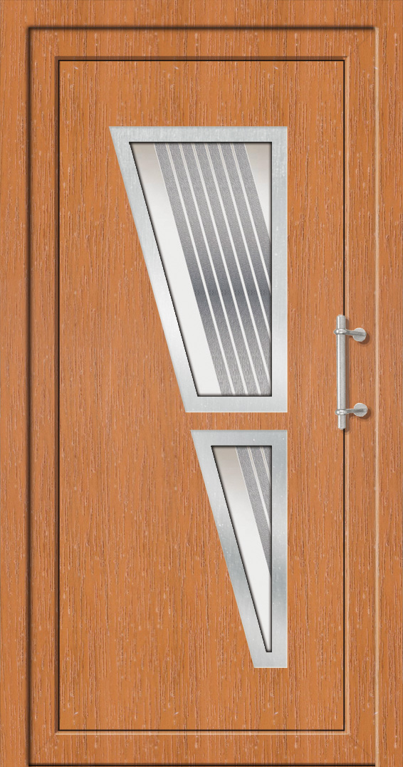 Elegantní výplně s přirozeným vzhledem dřeva, které dodají vstupním dveřím teplý, reprezentativní a nadčasový charakter.