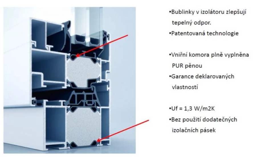 Hliníkový okenní systém s přerušeným tepelným mostem, vysokou statickou odolností a velmi dobrými tepelně-izolačními vlastnostmi pro moderní architekturu.