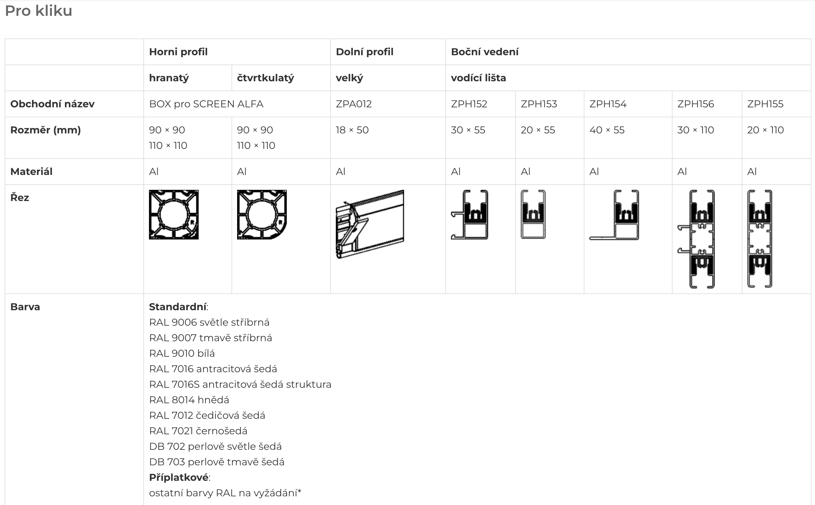 ** Pro samonosnou screenovou roletu Alfa-ZIP je max. šířka 3500 mm (klika, motor) nebo 2500 mm (solár),