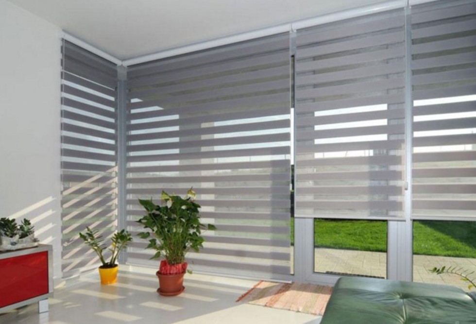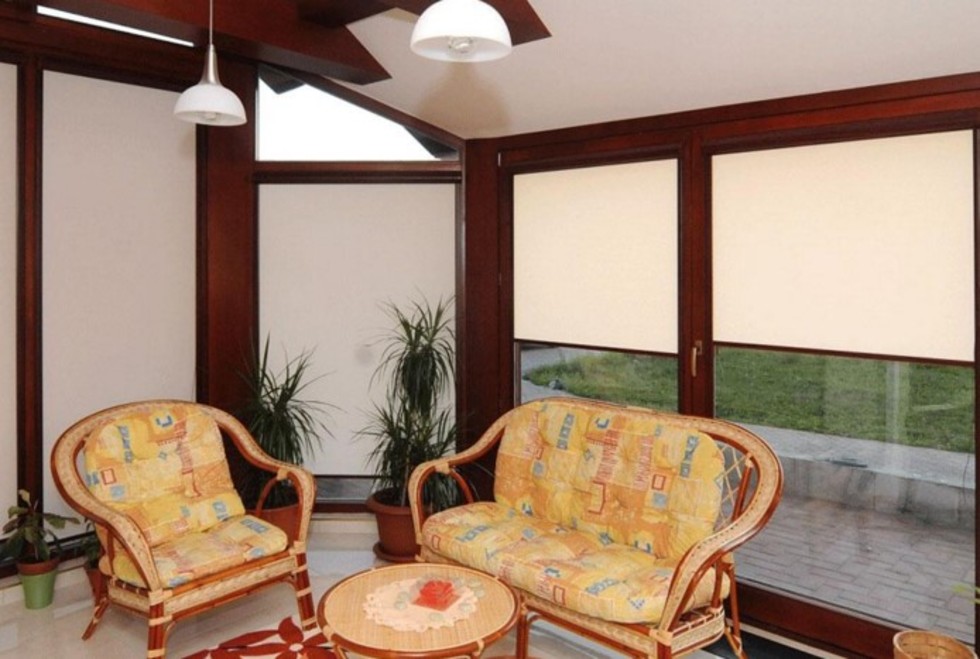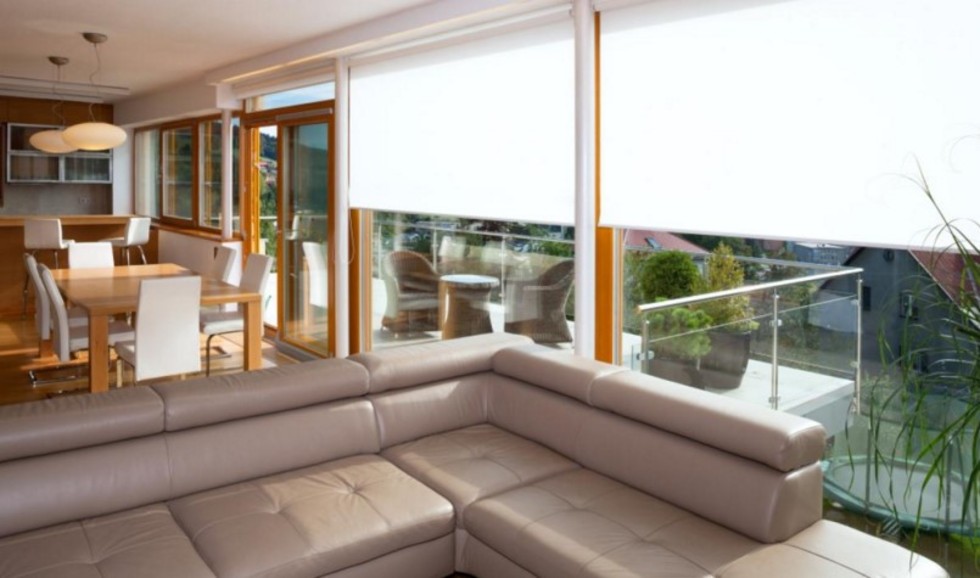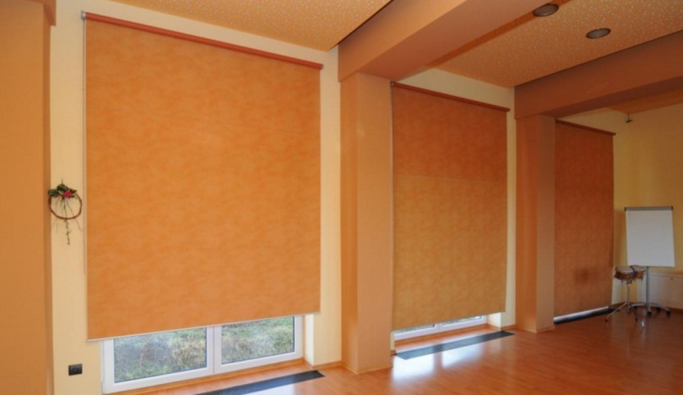 Látkové rolety pro stínění větších ploch v interiéru s možností ručního i motorického ovládání.